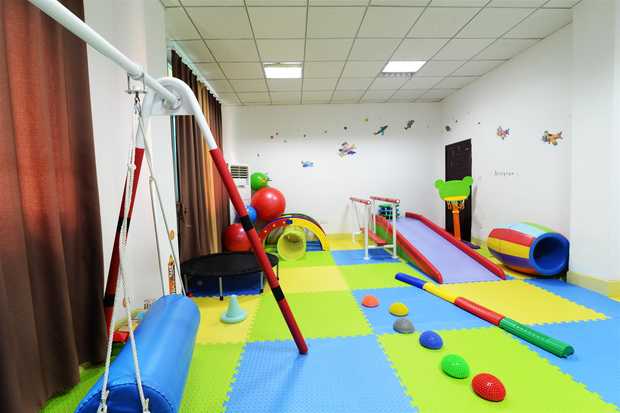 设置有个训室、言语开发室、情景社交室、集体教室、音乐游戏活动室、感统训练室、家长培训室、康复评估室、康复师办公室、接待室、家长休息及生活区域。本康复中心采用个别化,个性化教育训练,小组和集体教学相结合的授课方式,一个孩子一个IEP(教学计划),一个孩子一个主管老师,在粗大运动,语言沟通,社交认知,精细动作,生活自理等方面尊重儿童身心发展的规律,满足儿童全面发展的需要及特殊需要,为了儿童快乐健康成长提供专业服务。